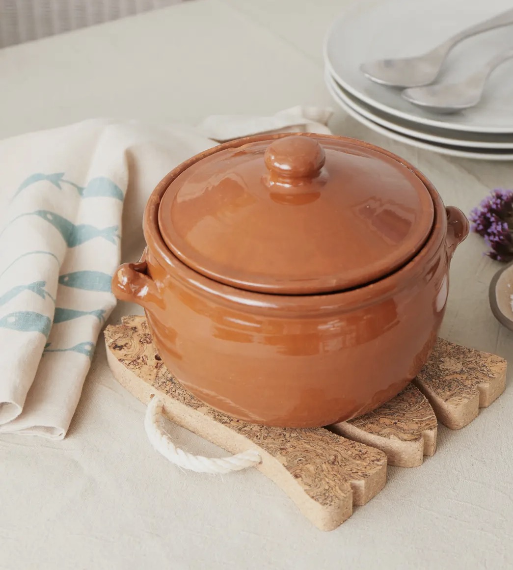 This natural cork trivet is sure to look good on the table as you serve dinner. It is smoked with a light ink to enhance the natural pattens of the cork. Linked with a sisal rope, you can adjust the cork fish which are each 21cm and 2cm thick.