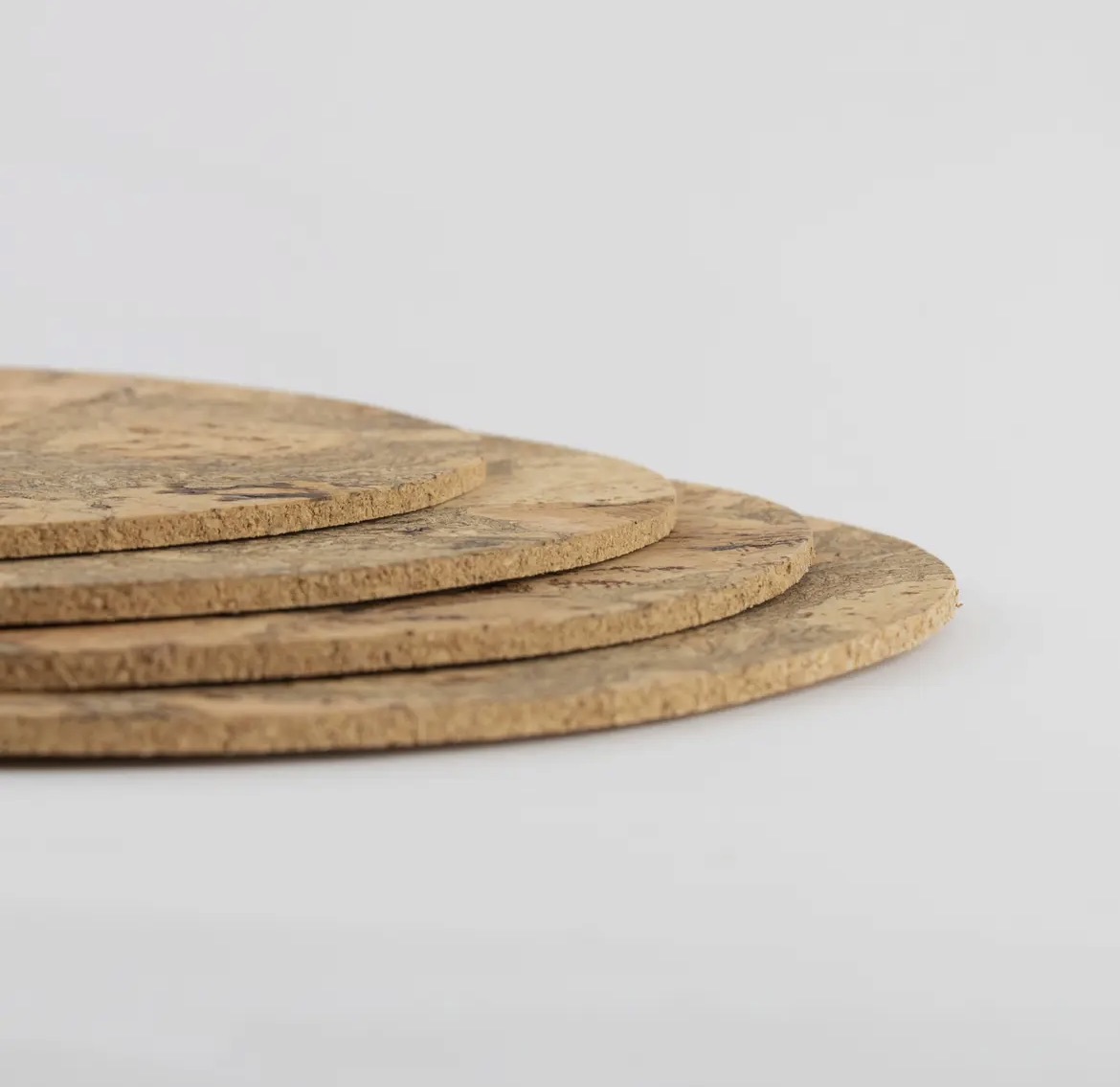 These round cork coasters have each been smoked with light ink to enhance the beautiful patterns of the cork which make each mat unique.